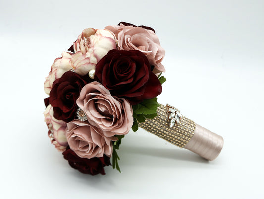 Boho Wedding Bouquet Dusty Rose Wine Ivory, Silk Bridal and Bridesmaids Bouquets for Weddings, Rose Peony Eucalyptus Wedding Bouquet Silk